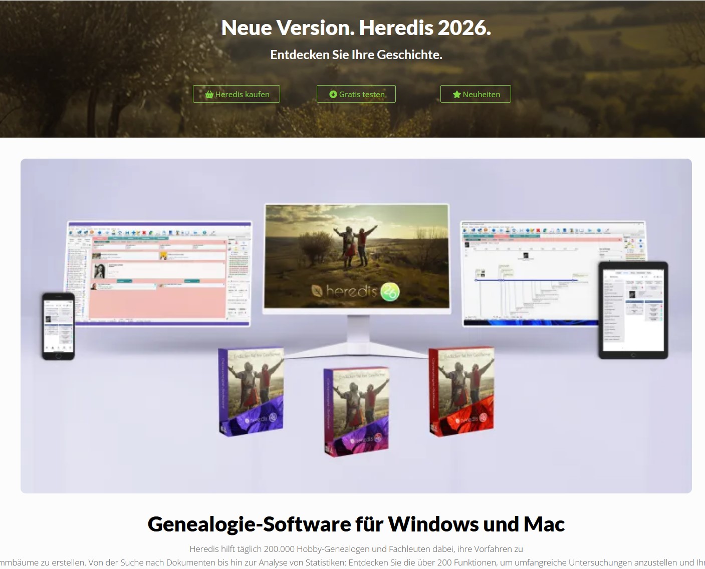 Seit mehr als 30 Jahren entwickelt der französische Software-Hersteller Heredis ein innovatives Programm zur Familienforschung. Mehr als 200 Funktionen unterstützen Hobby- und Berufsgenealogen von A bis Z bei ihren Nachforschungen: von der Suche nach Vorfahren über die Verwaltung der gefundenen Daten bis hin zur Erstellung eindrucksvoller Stammbäume und Bücher, wie z. B. Ortsfamilienbücher. Mitte September erschien die neue Version Heredis 2026!